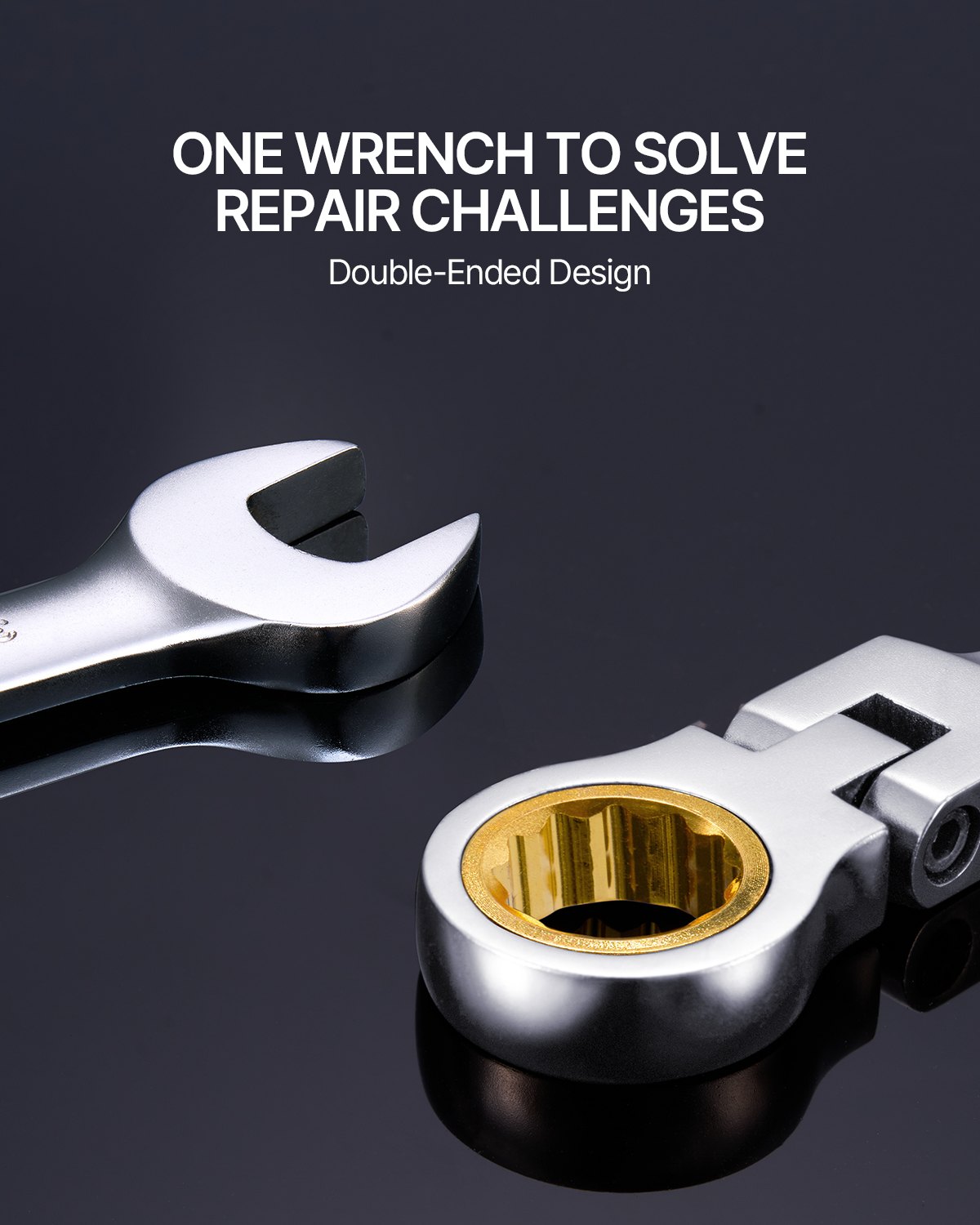 72-Tooth Ratchet: Featuring a 72-tooth design with a 5° minimum working angle, our flex head ratchet wrench set also includes a 180° adjustable head, providing greater flexibility and easy operation in confined spaces.