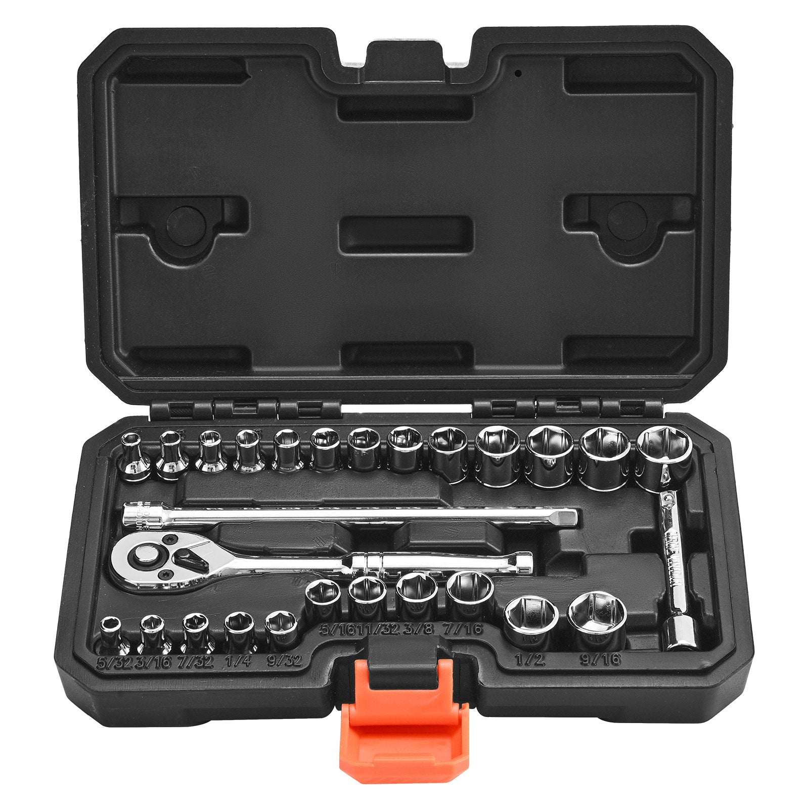 Convenient Storage Case: Our metric socket set comes with a durable, drop-resistant case with custom shockproof slots to keep tools secure. The reinforced latch design ensures secure storage, keeping tools organized and easy to access